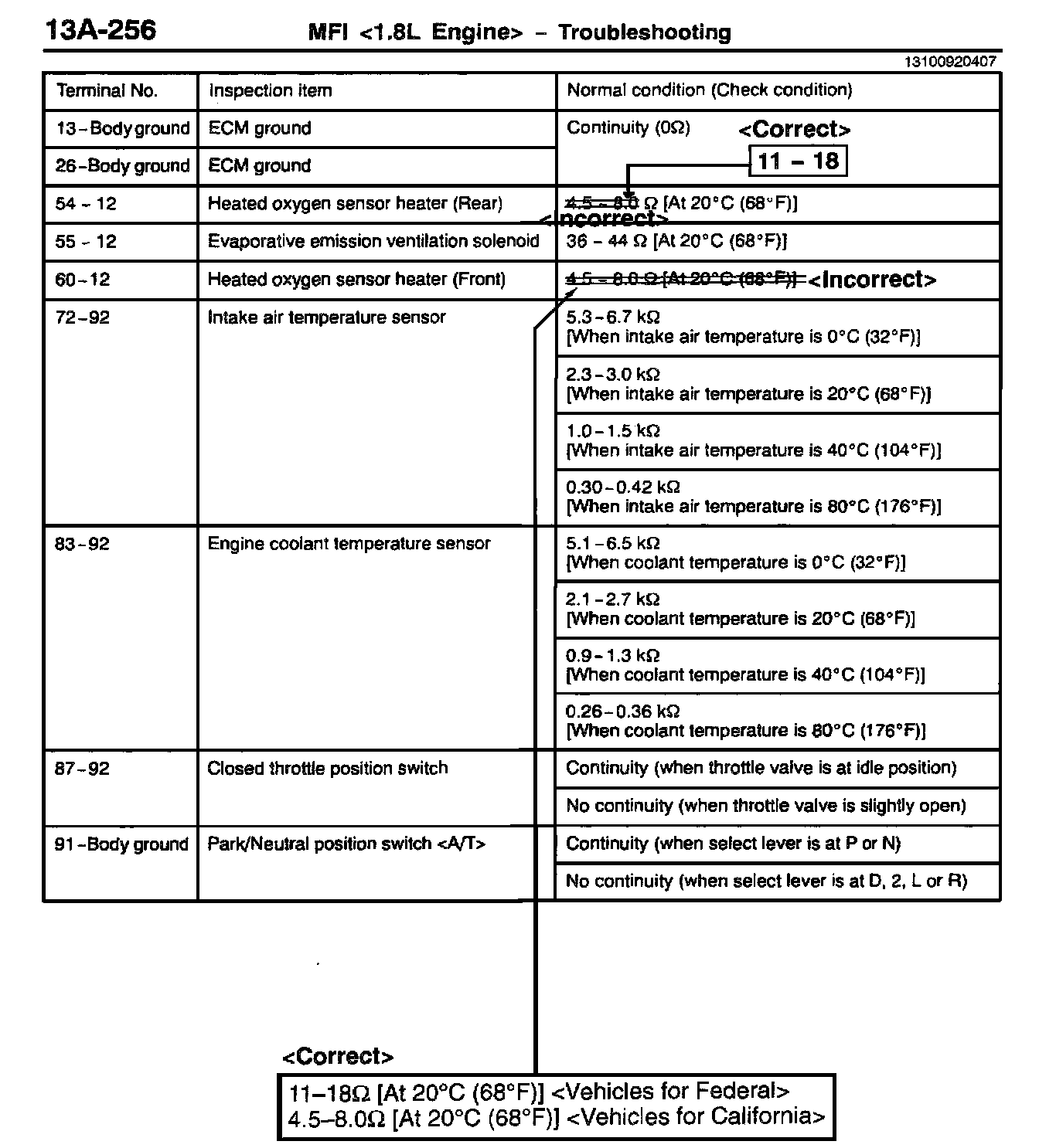 REVISED HEATED OXYGEN SENSOR RESISTANCE VALUES AND CHECKING PROCEDURES - SERVICE MANUAL REVISION