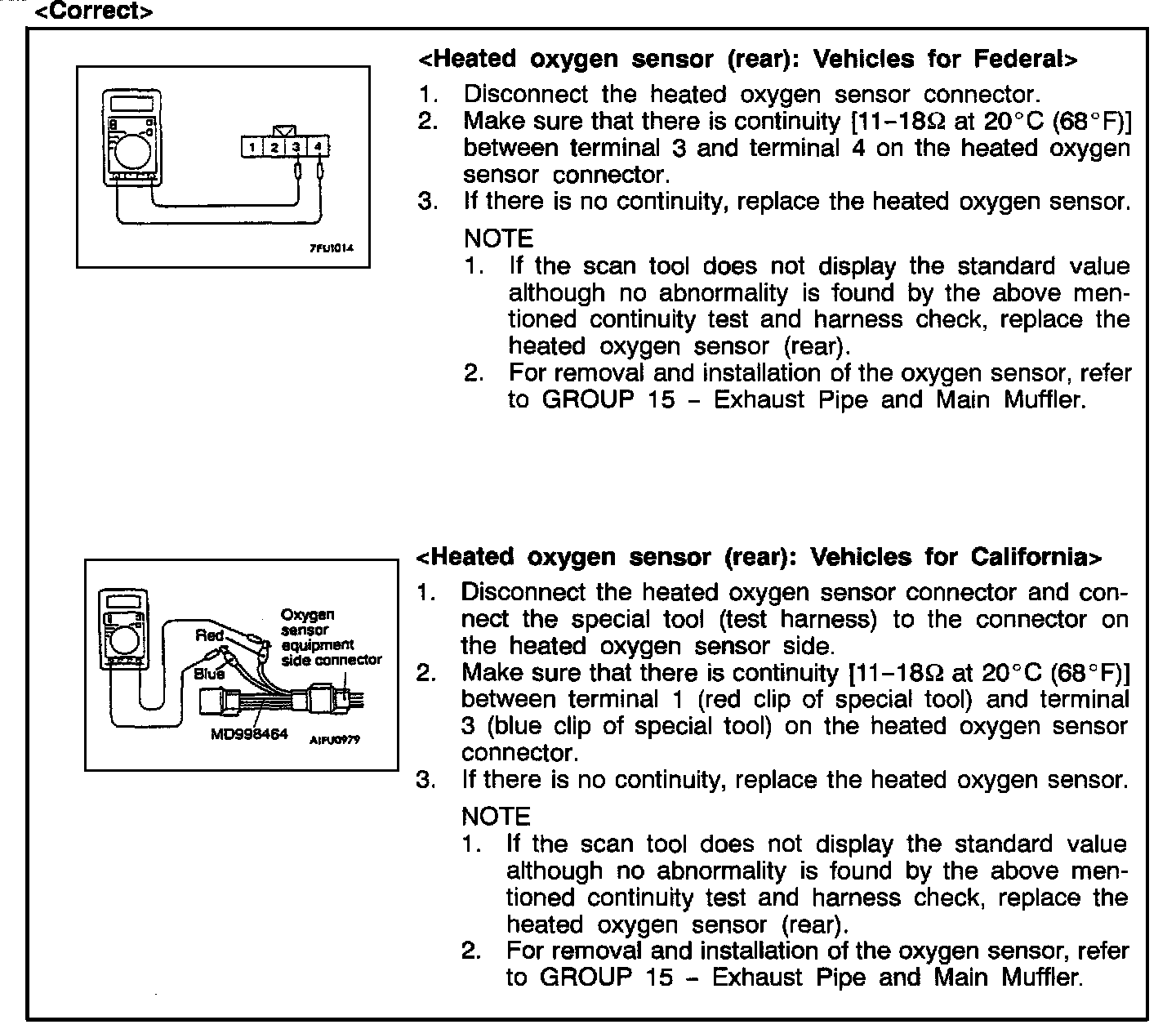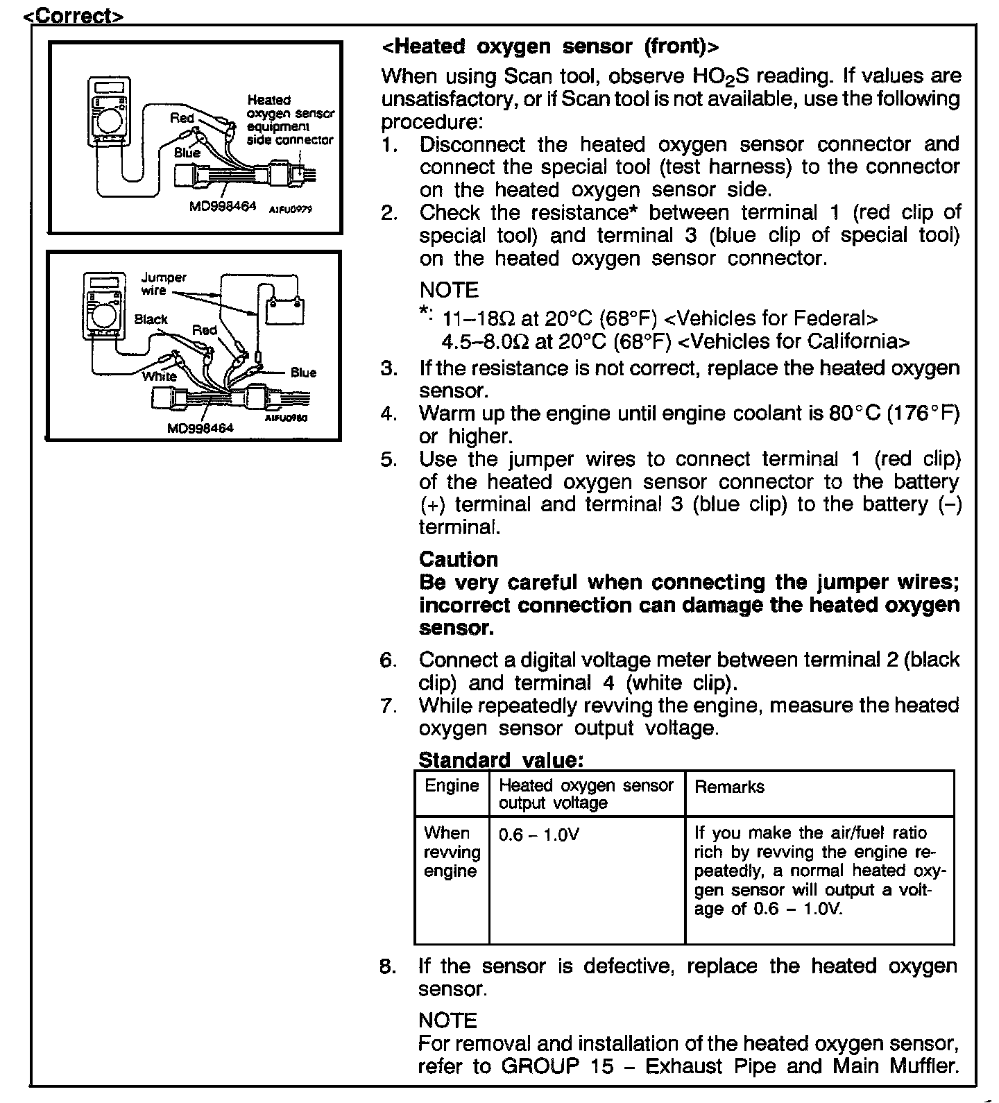 This bulletin contains corrections to the heated oxygen sensor resistance values and checking procedures in the 1998 Mirage Volume 1 service manual.