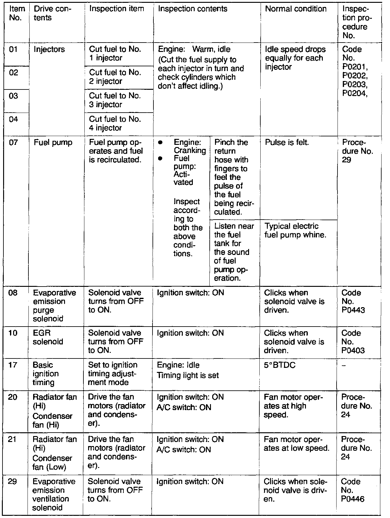 INSPECTION USING SCAN TOOL DATA LIST AND ACTUATOR TESTING