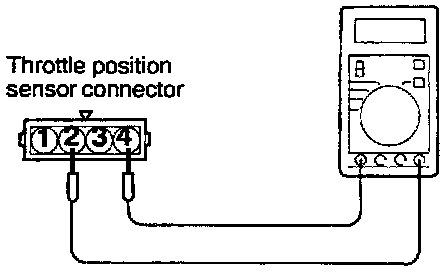 THROTTLE POSITION SENSOR RESISTANCE TEST1. Disconnect the throttle position sensor connector.