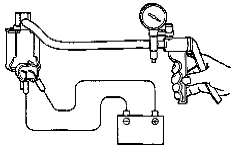 4. Check airtightness by applying a vacuum with voltage applied directly from the battery to the EGR control solenoid valve and without applying voltage.