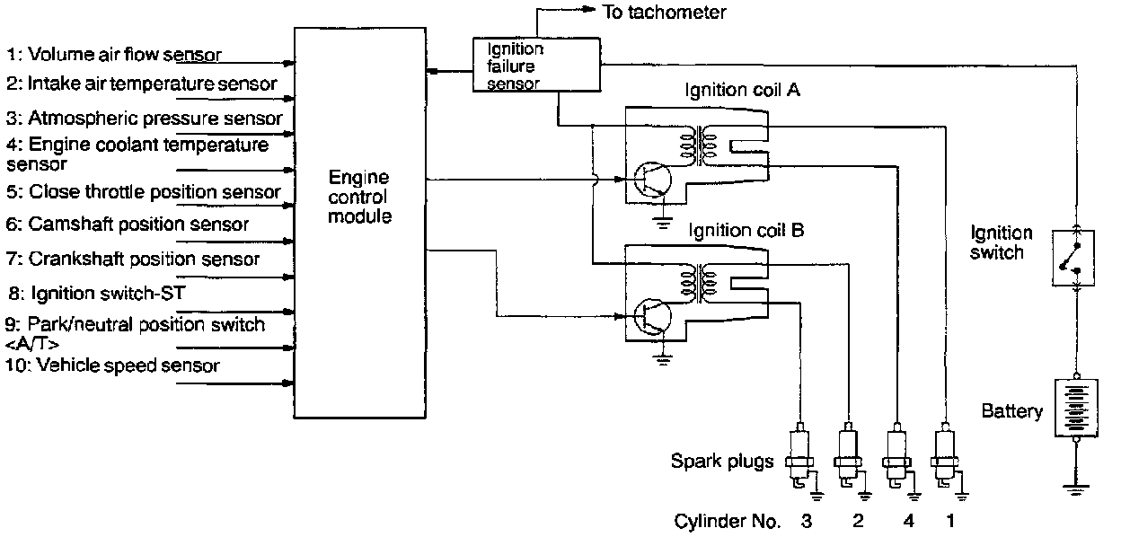- This system is provided with two ignition coils (1 and 2) with built-in ignition power transistors (Coil 1 contains power transistor A and coil 2 contains power transistor B). Coil 1 supplies cylinder number 1 and 4. Coil 2 supplies cylinder number 2 and 3.