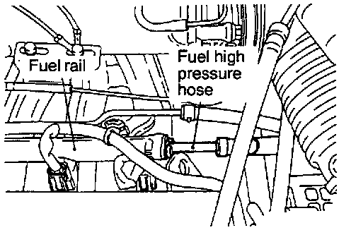 2. Disconnect the fuel high pressure hose at the fuel rail side.