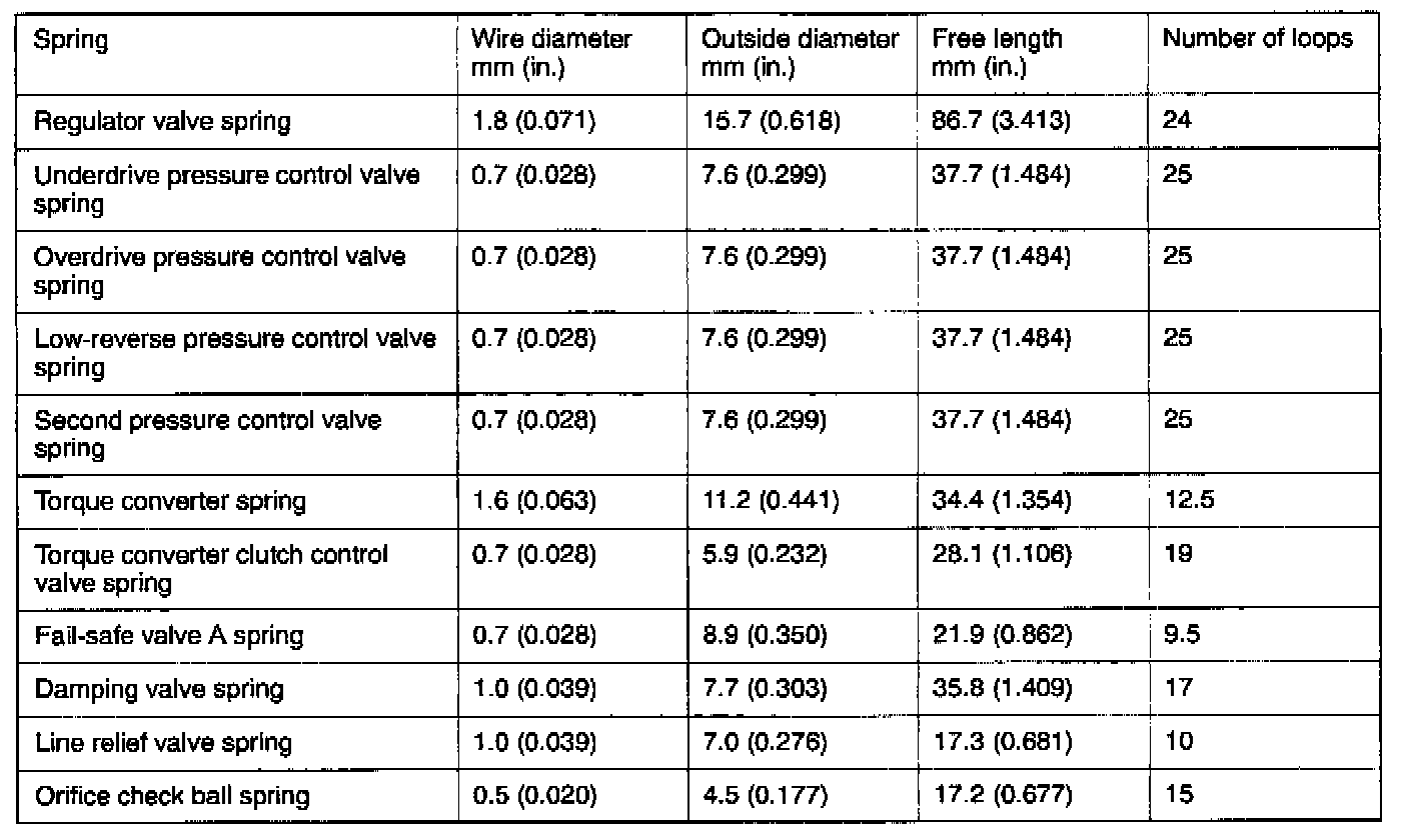Valve Body Spring Identification Table