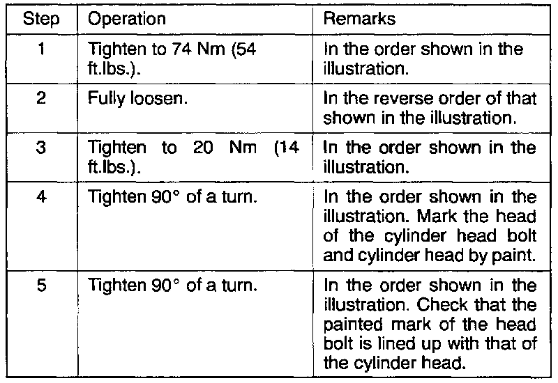 Cylinder Head Tightening Specifications
