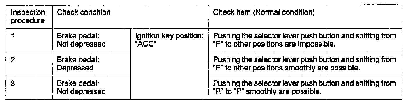 SHIFT LOCK MECHANISM CHECK1. Carry out the following inspections.