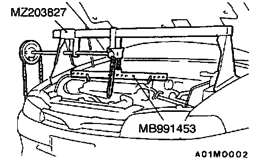 Set the special tool to the vehicle to support the engine assembly.