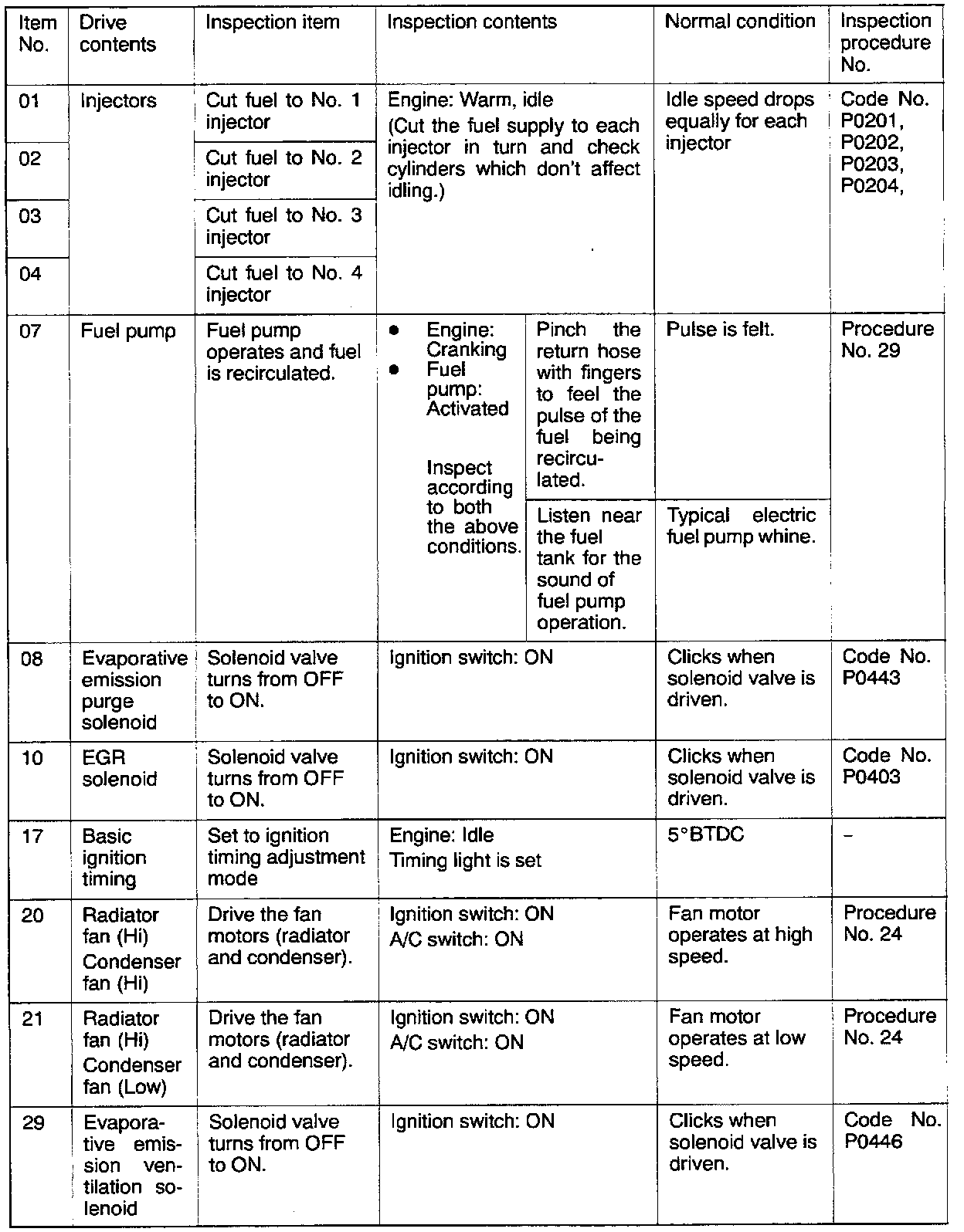 INSPECTION USING SCAN TOOL DATA LIST AND ACTUATOR TESTINGDATA LIST REFERENCE TABLE