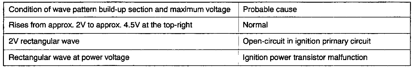Point: Condition of wave pattern build-up section and maximum voltage (Refer to abnormal wave pattern examples 1 and 2.)
