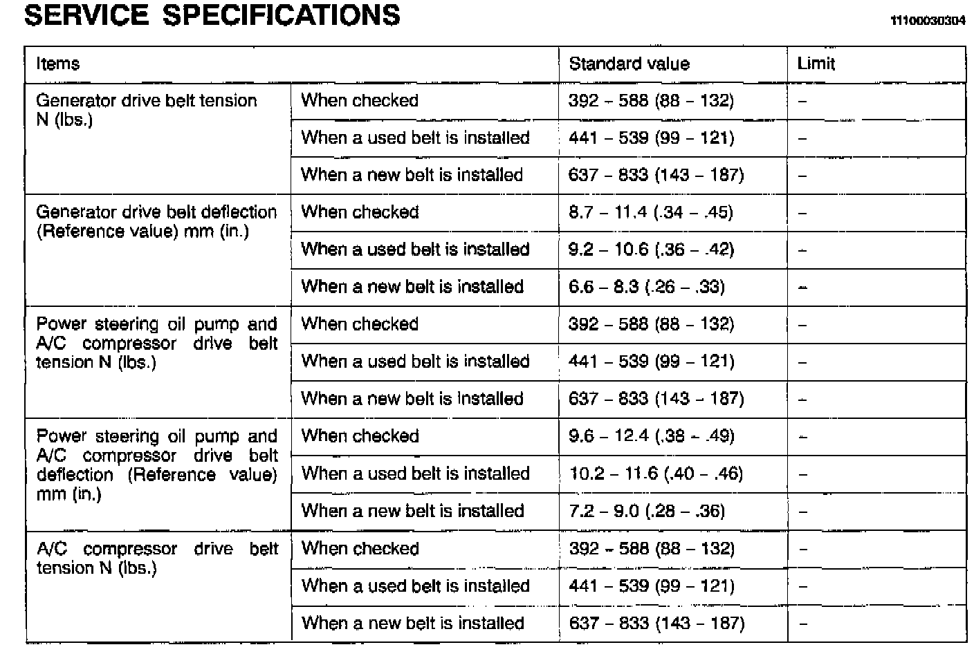 Engine-On Vehicle Service Specifications