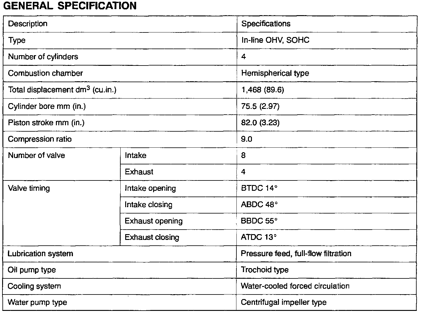Mirage Sedan DE L4-1468cc 1.5L SOHC MFI