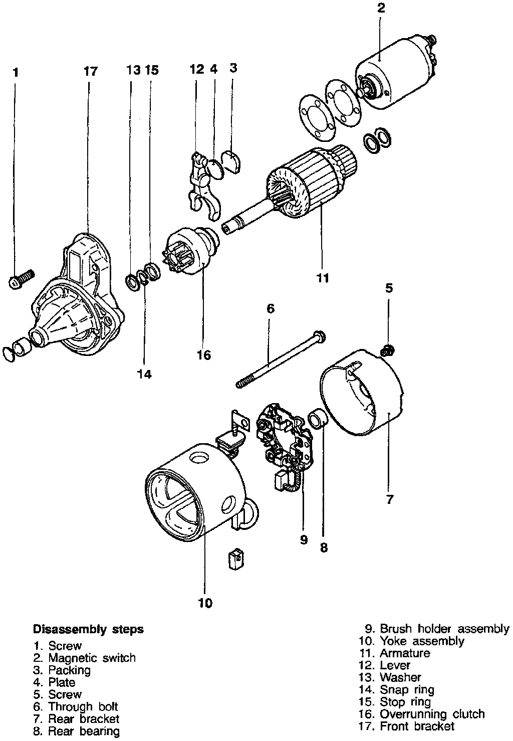 2. Remove snap ring with snap ring pliers and then remove stop ring and overrunning clutch.