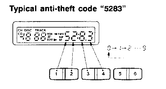 5. Press No.1 through No.4 memory select buttons and set the 4-digit anti-theft code indicated on the card.