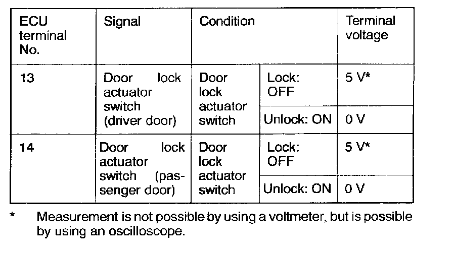 DOOR LOCK ACTUATOR SWITCH INPUT CIRCUITDescription of operation