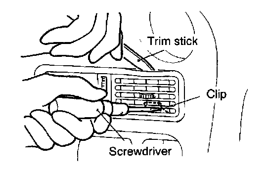 Disengaging the clips (2 positions) of the center air outlet assembly with a flat tip screwdriver, remove the center air outlet assembly with the trim stick.
