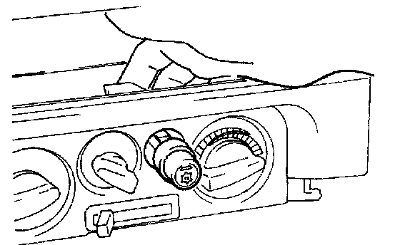 Remove the center air outlet assembly, and insert hand to the back of the cluster panel assembly through the produced opening. Push it toward you for removal.