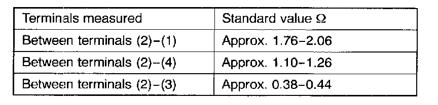 Using a circuit tester, measure the resistance between the terminals indicated below.