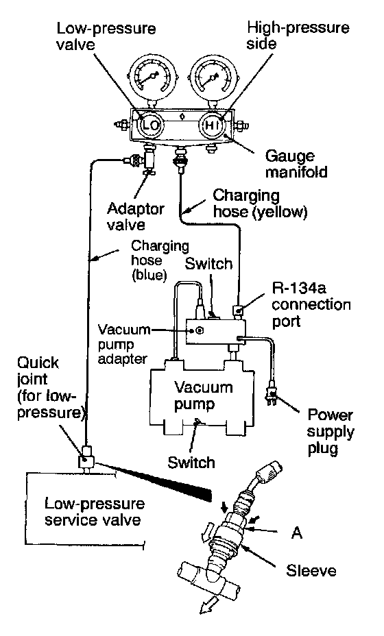 12. Turn the vacuum pump adaptor switch to the R-134a side to start the vacuum pump.