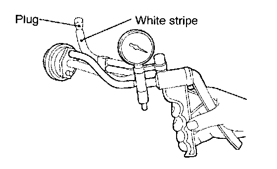VACUUM CONTROL VALVE CHECK1. Disconnect the vacuum hose (white stripe) from the vacuum control valve and connect the hand vacuum pump to the vacuum control valve.