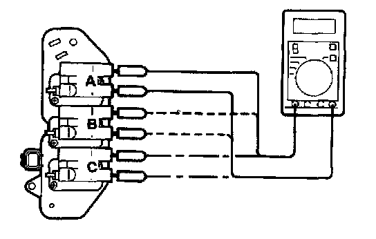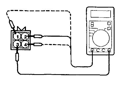 Measure the resistance between connector terminal (3) (power) and each coil terminal.