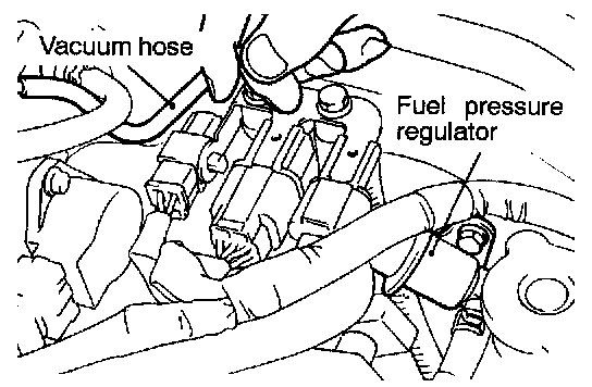 10. Disconnect the vacuum hose from the fuel pressure regulator, and then measure the fuel pressure while using a finger to plug the end of the hose.