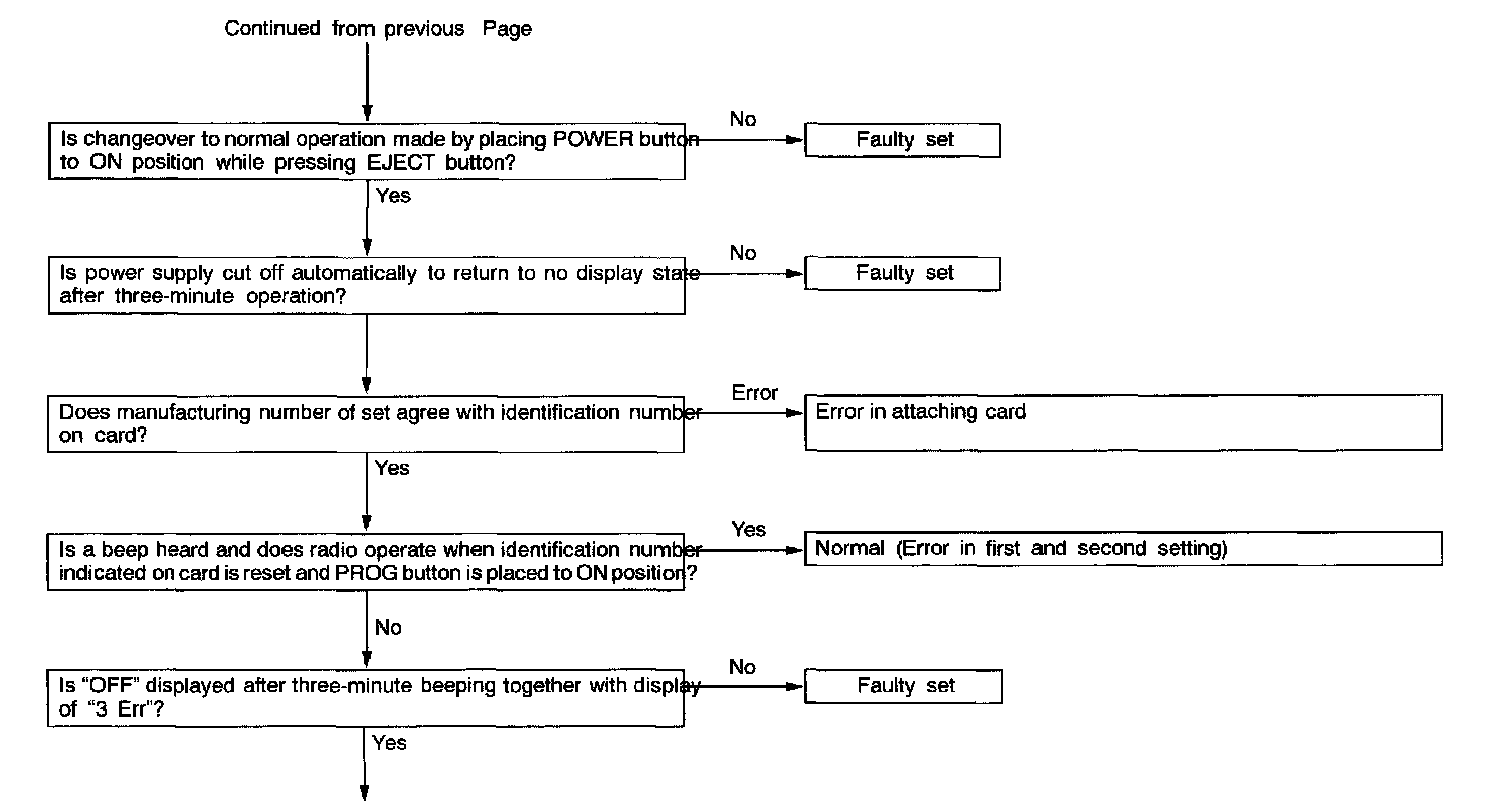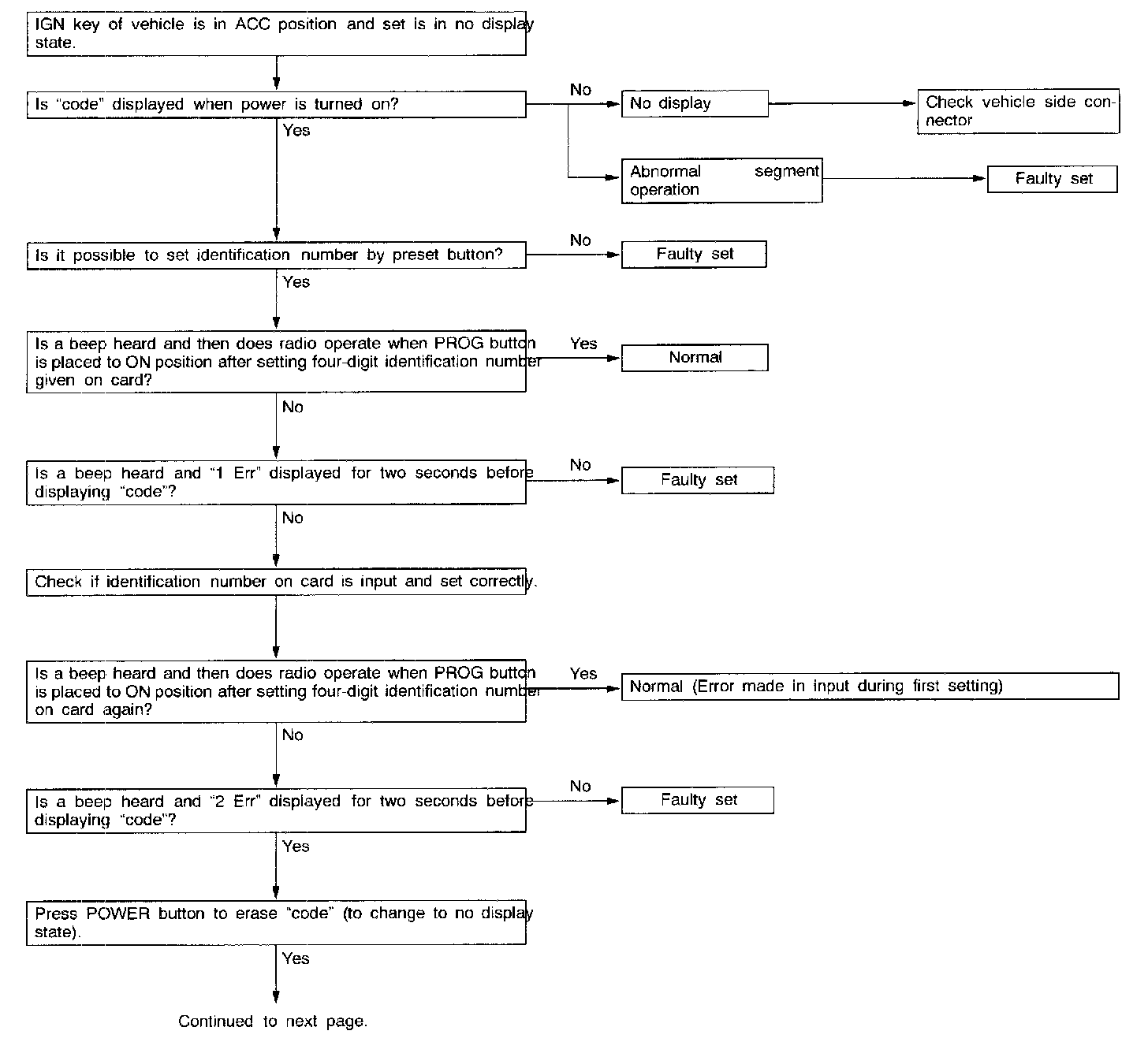 - In the "OFF" state, continuation of the BATT, ACC line ON state for more than one hour will allow identification number checking operation again and placing the POWER button to ON position will display "code" and wait for input.