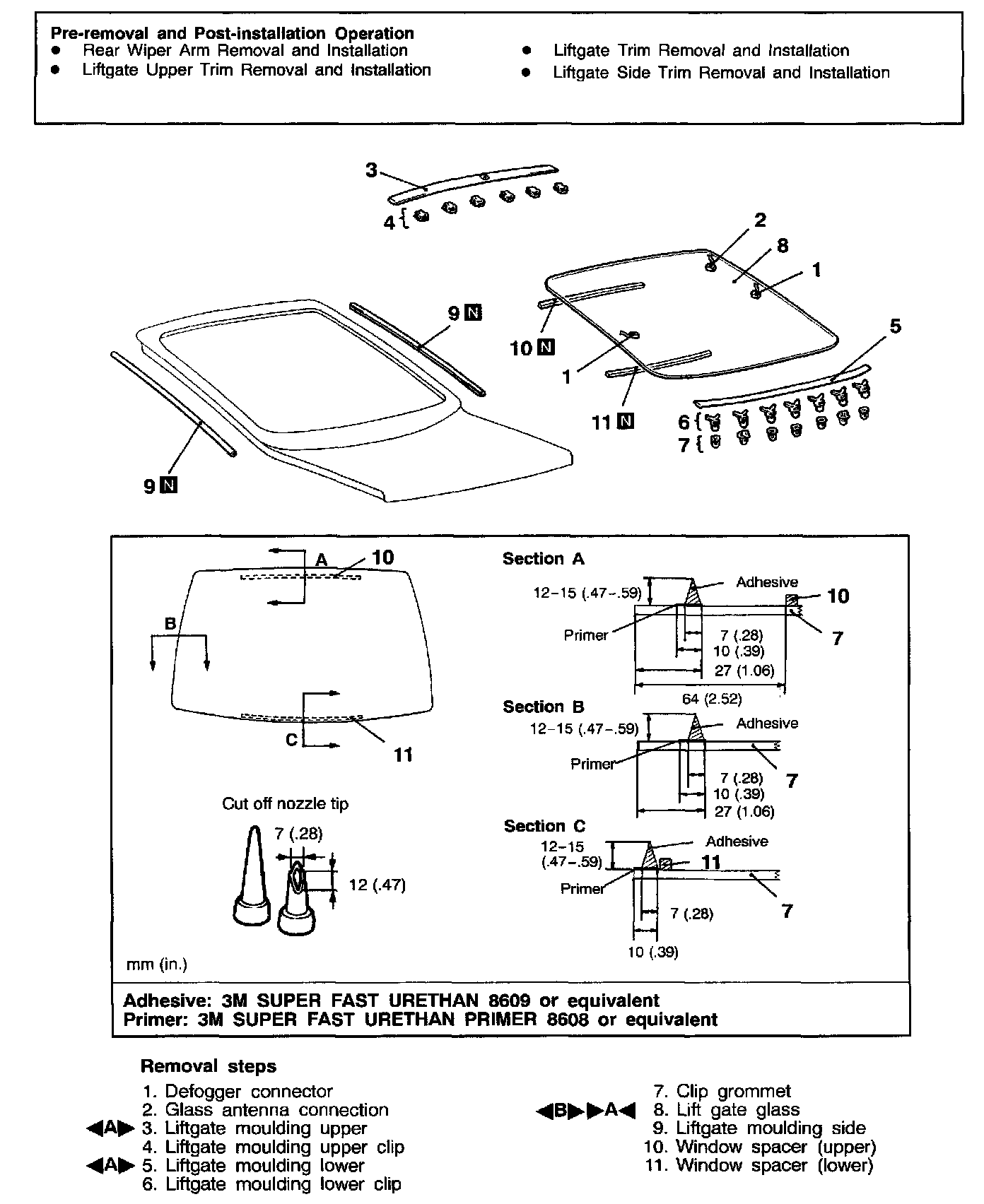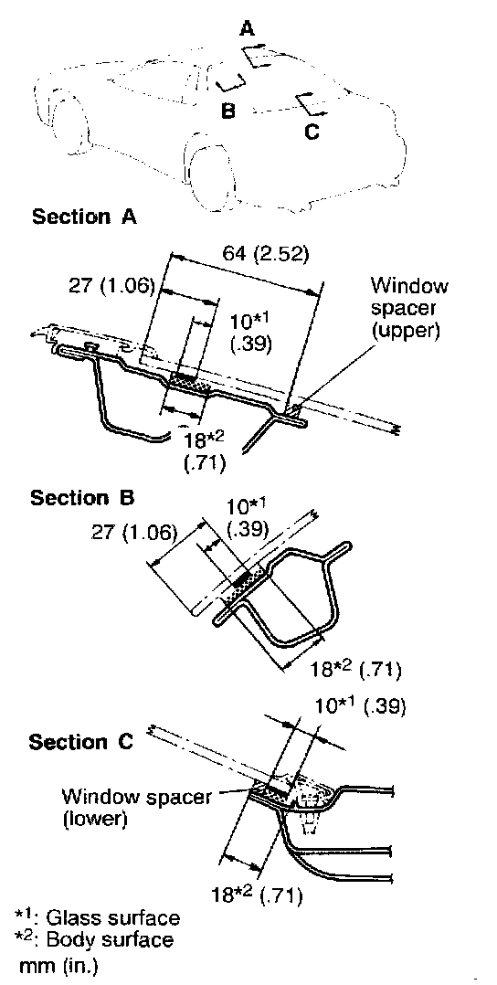 1. Affix the window spacer to the specified area of the liftgate glass.