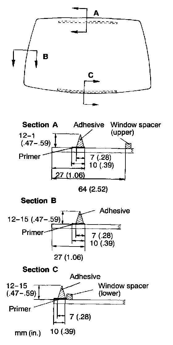 3. Apply a uniform coat of primer to the illustrated areas of the body and glass making sure it is applied without breaks or thin spots.