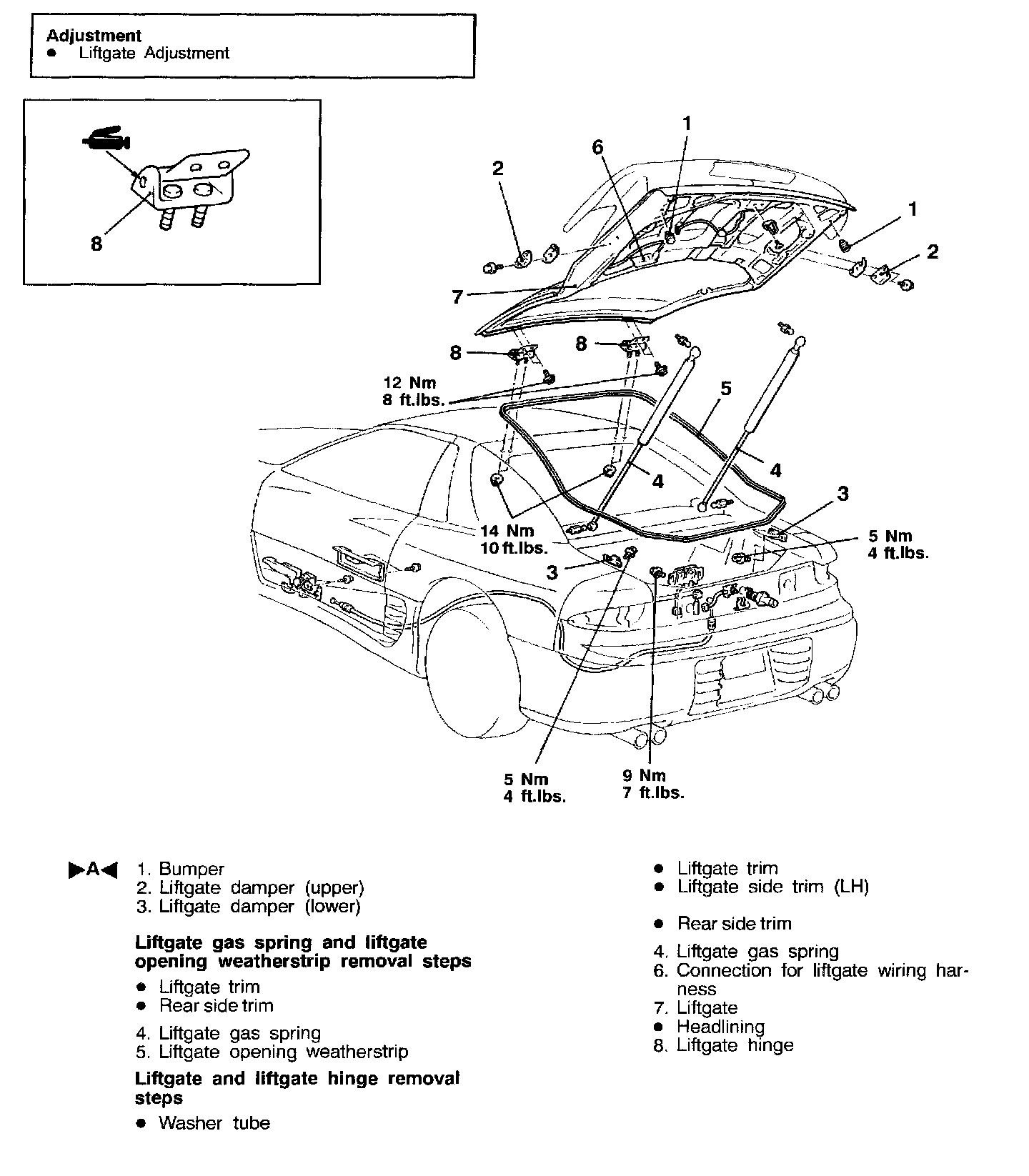 Install the bumper so that the amount of projection from the liftgate is as shown in the illustration.