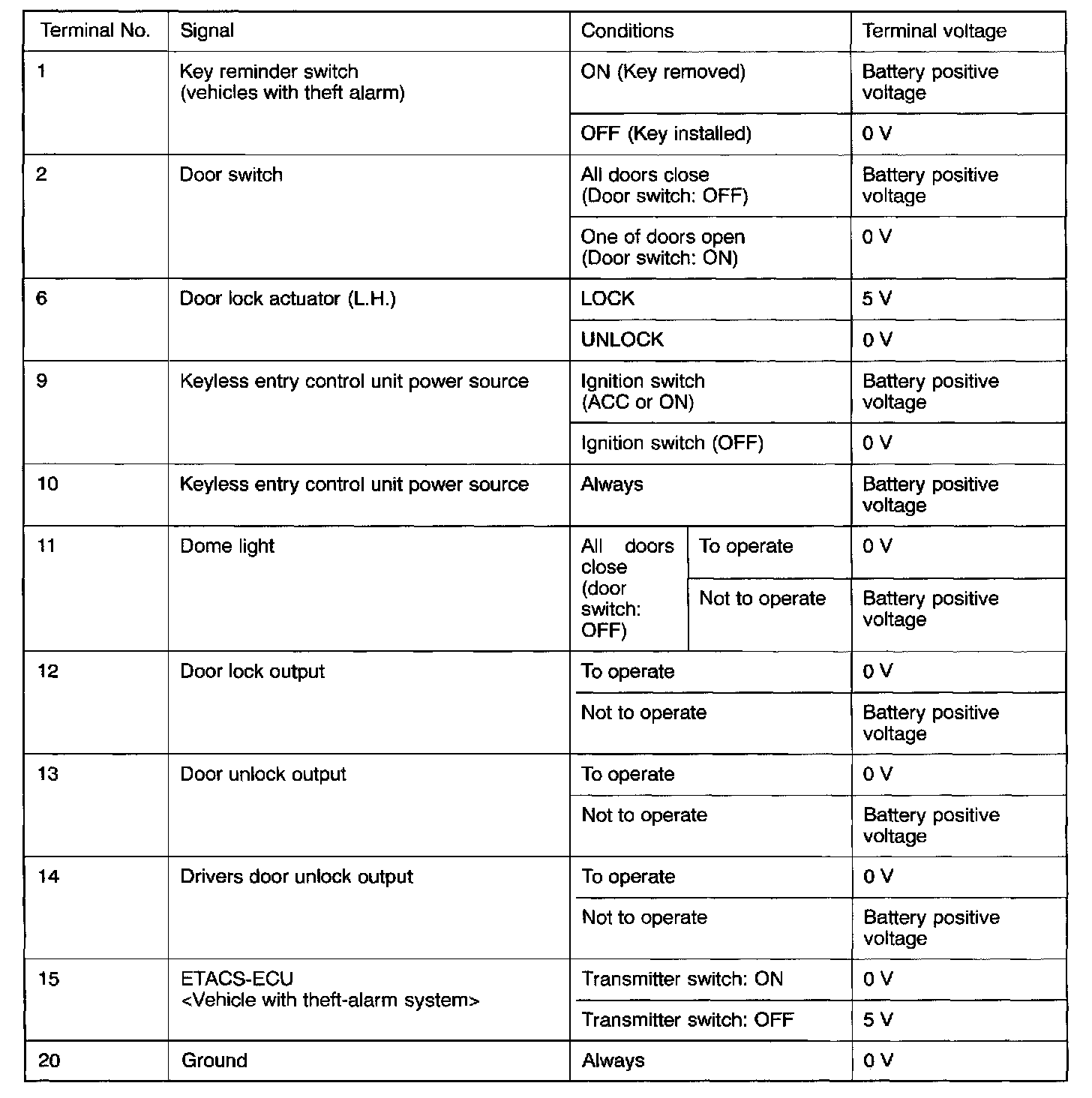 Disconnect the amplifier and inspect the connector on the wire harness side as shown in the chart.