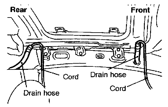 Tie a cord to the end of the drain hose, and wind tape around the tie until it is smooth. Then pull the drain hose out from the passenger compartment.