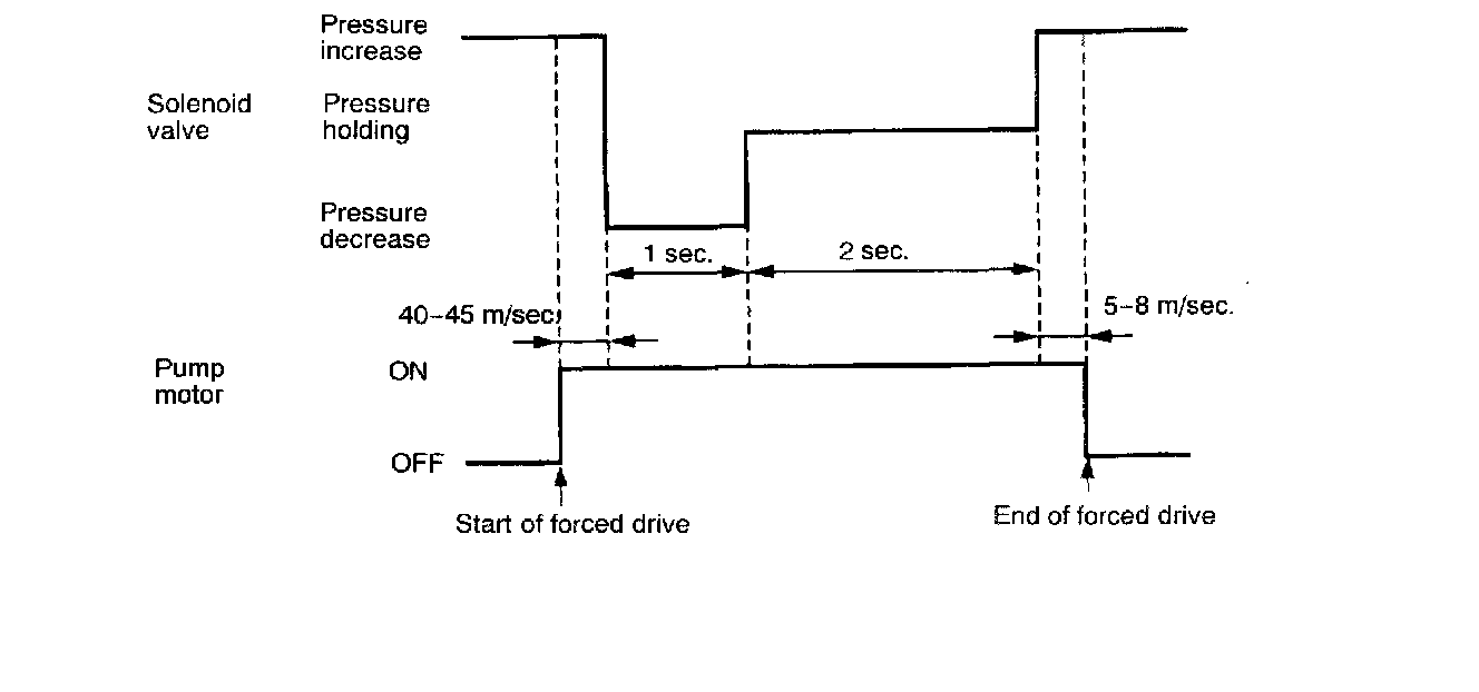 2) Actuator test can be carried out only when the vehicle is not running. If the vehicle speed reaches 10 km/h (6 mph) while the actuator is force-driven, force driving is discontinued.
