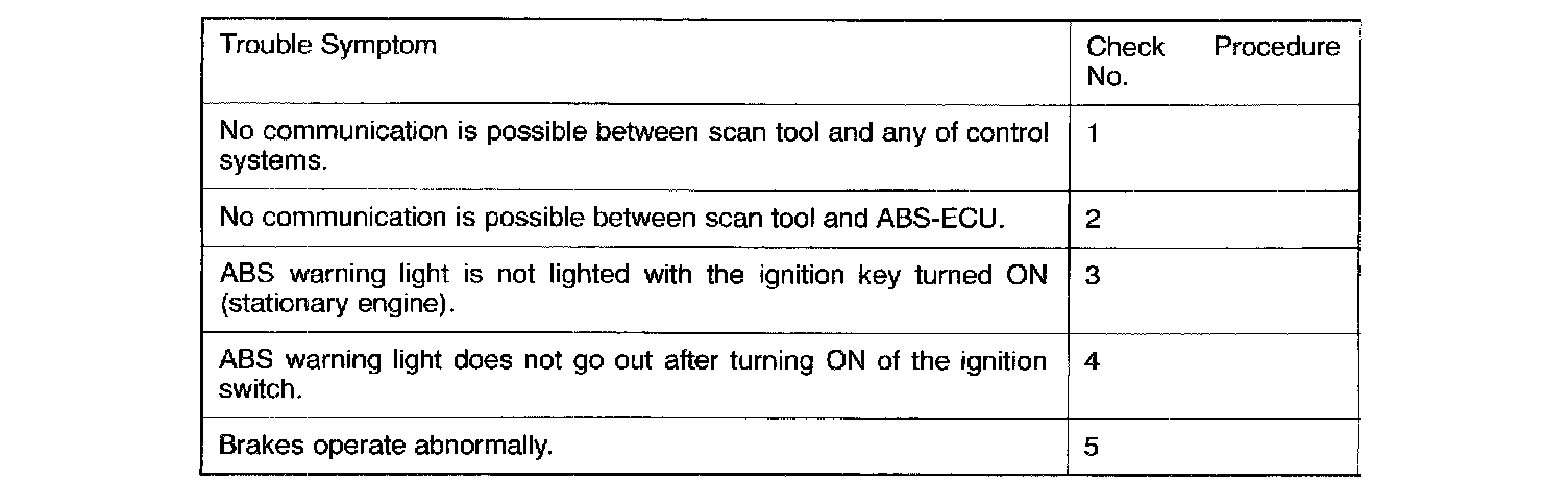 INSPECTION CHART FOR TROUBLE SYMPTOMSCaution:
