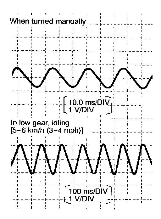 3. Manually turning the wheel to be measured by 1/2 to 1 turn/second, measure the output voltage with a circuit tester or oscilloscope.