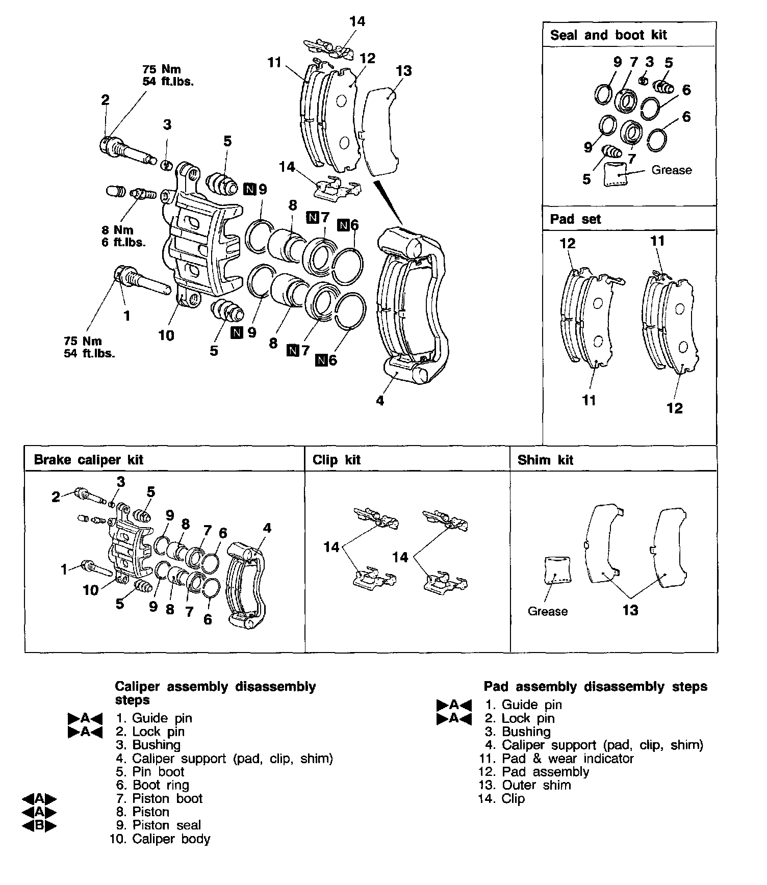- Check pad for damage or adhesion of grease and check backing metal for damage.