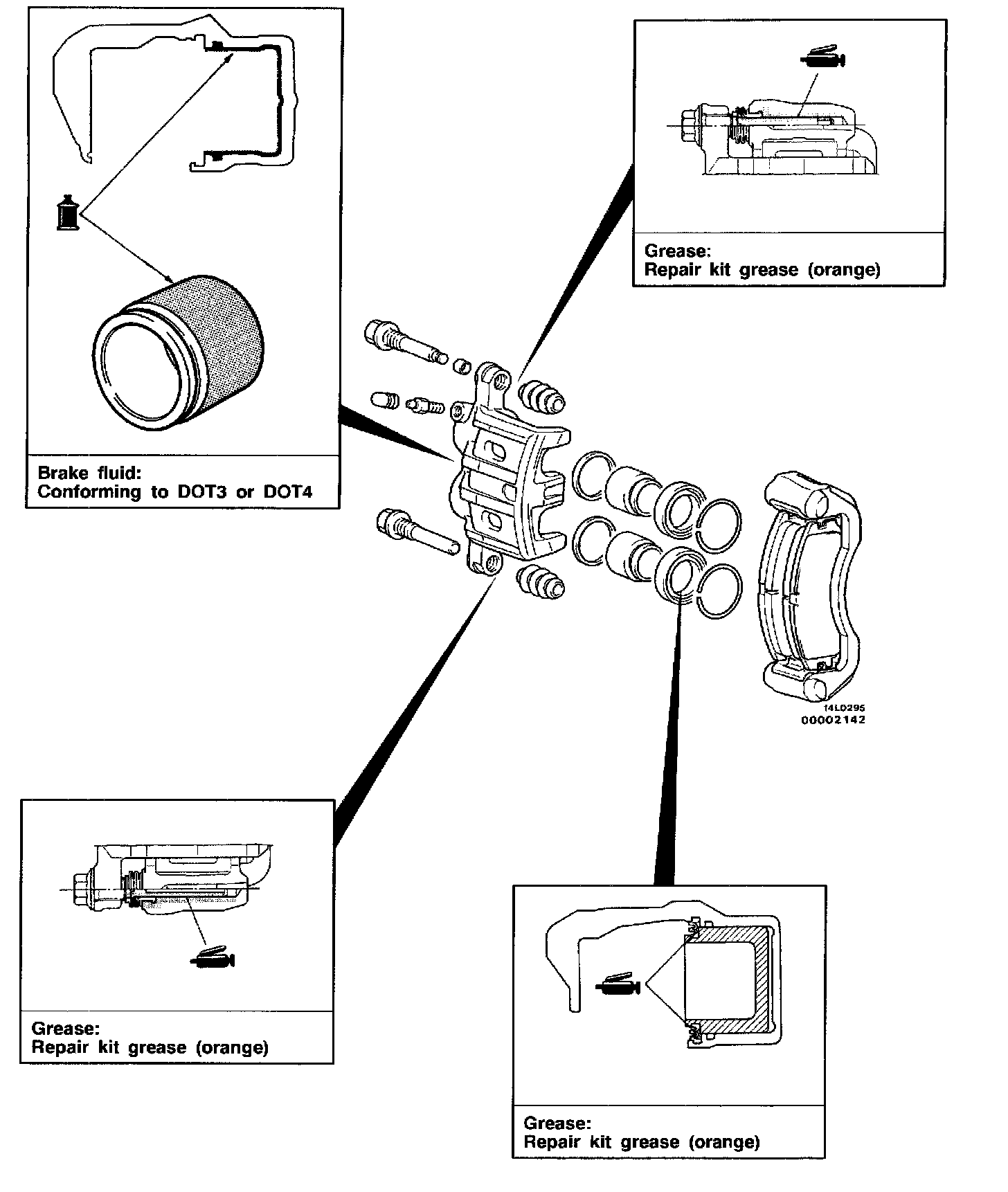 2) Clean piston surface and inner cylinder with trichloroethylene, alcohol or specified brake fluid.