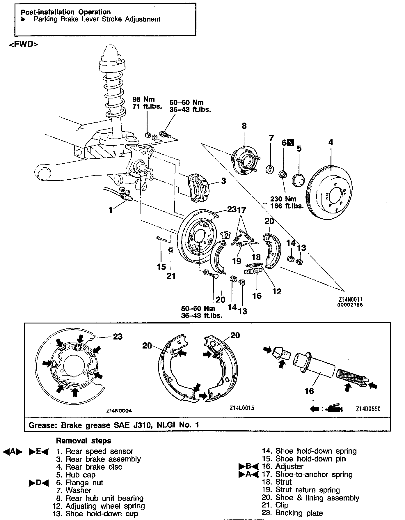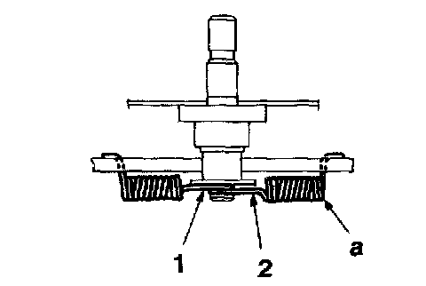 Caution: Each shoe-to-anchor spring has a unique spring load and the spring "a" is painted to prevent erroneous installation.