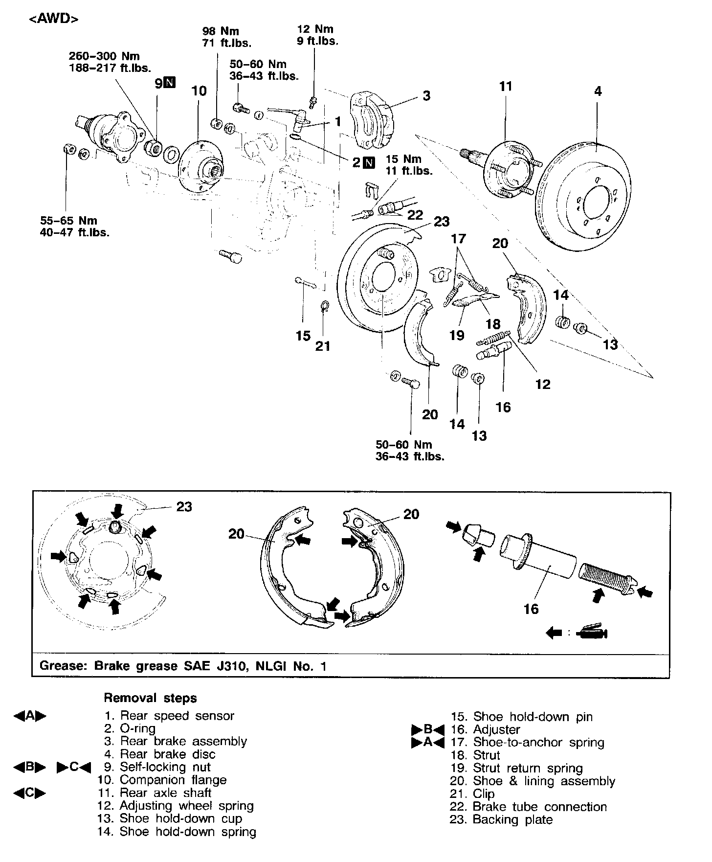 NOTE: The figure shows the left wheel; for the right wheel, the position in symmetrical.