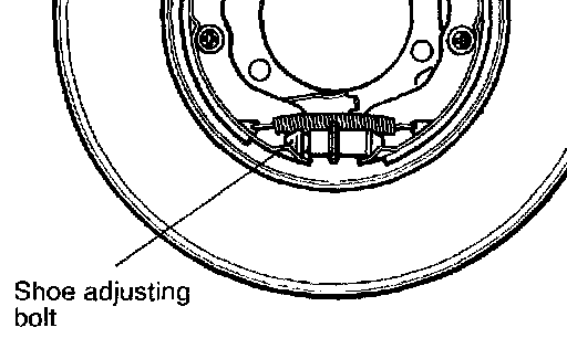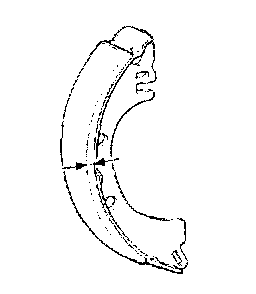 Caution: Replace the brake shoes if the thickness of the brake lining is the limit value or less.