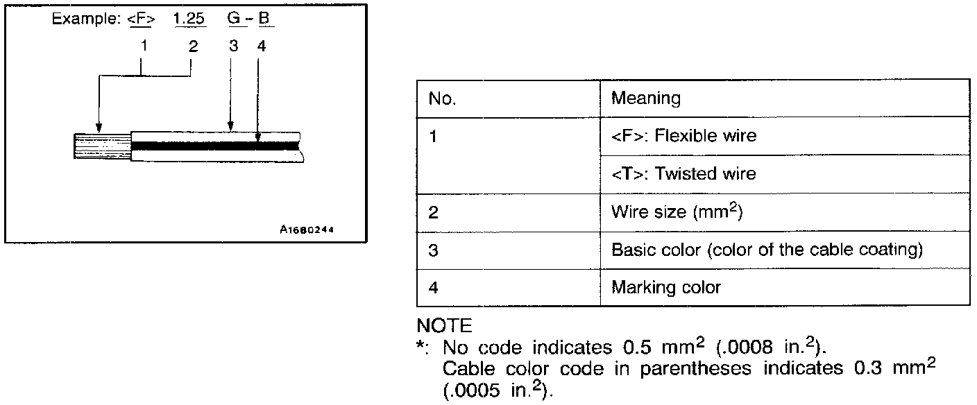 If a cable has two colors, the first of the two color code characters indicates the basic color (color of the cable coating) and the second indicates the marking color.