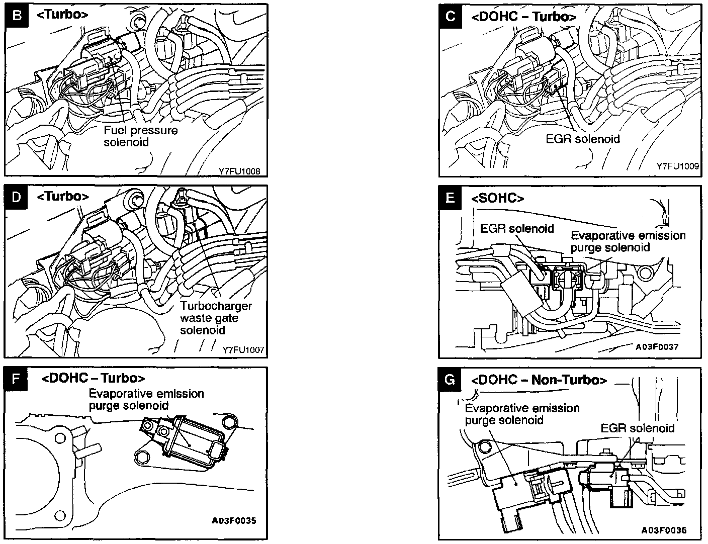 Solenoid, Solenoid Valve Locations Views B-G: