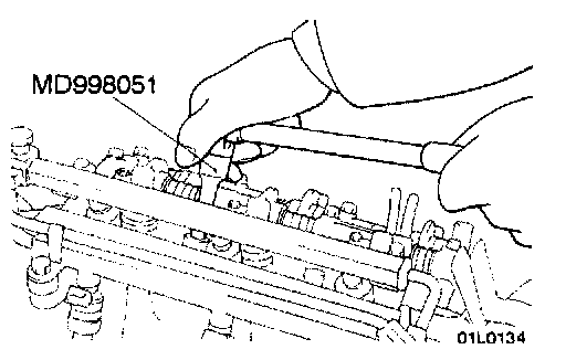 Using the special tool, remove the cylinder head assembly.