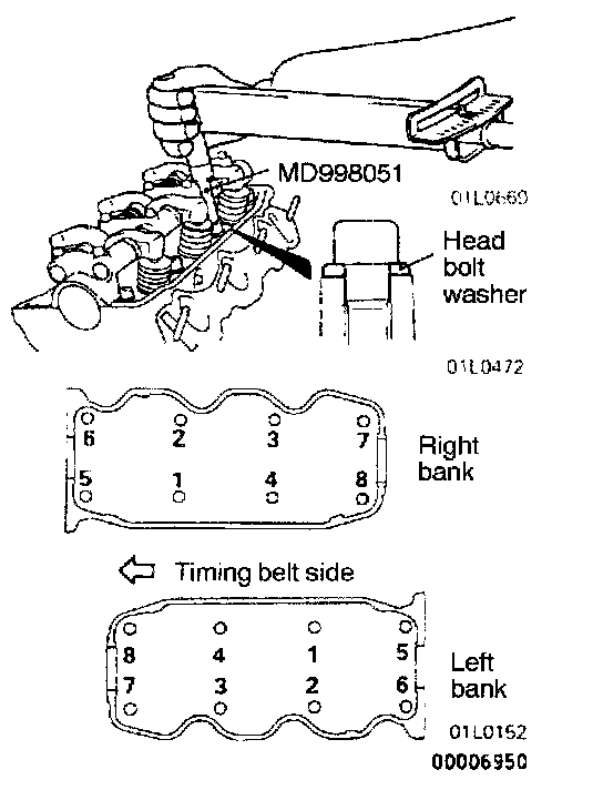 CAUTION: Install the head bolt washers with chamfer up as shown in the illustration.