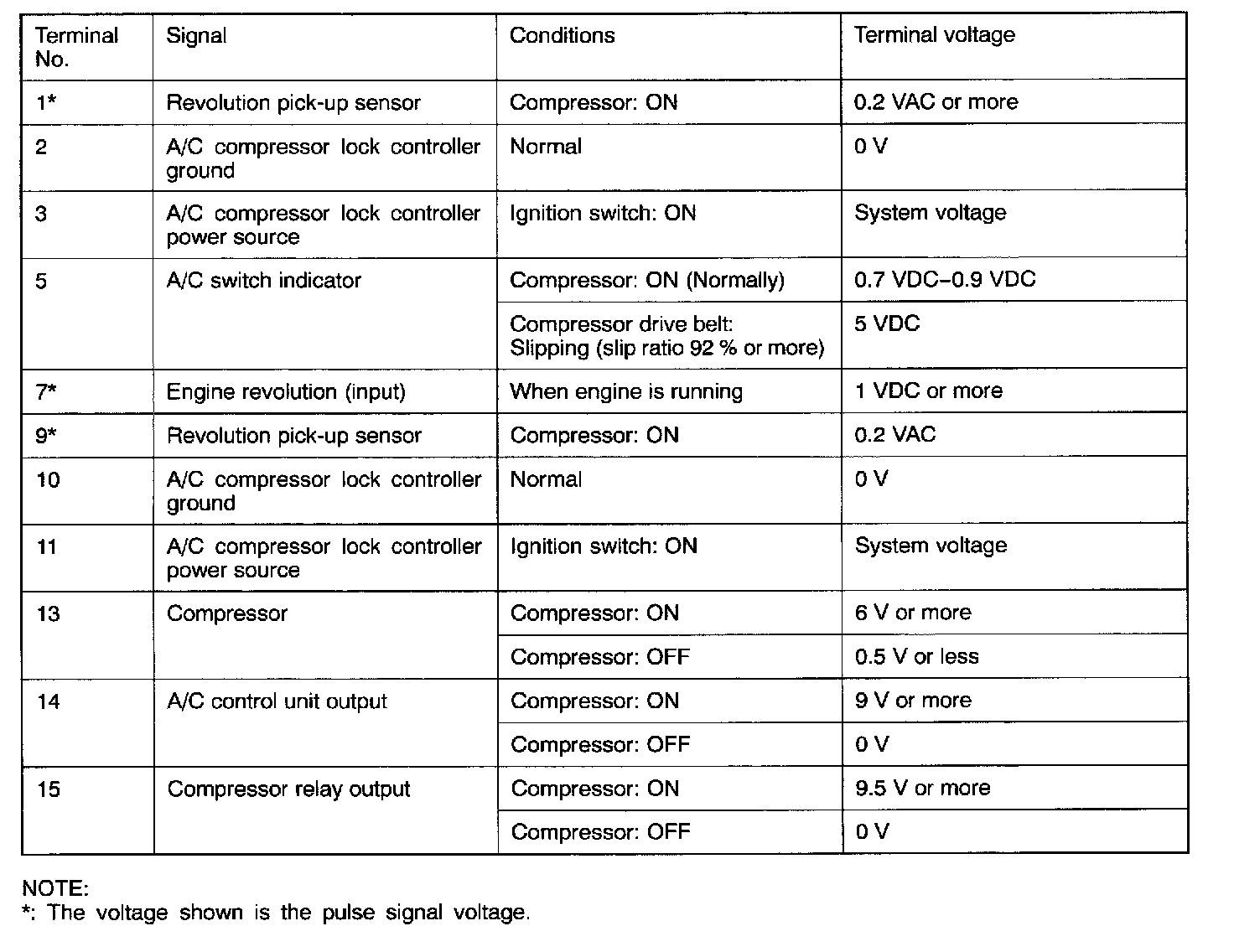 Disconnect the amplifier and inspect the connector on the wire harness side as shown in the chart.