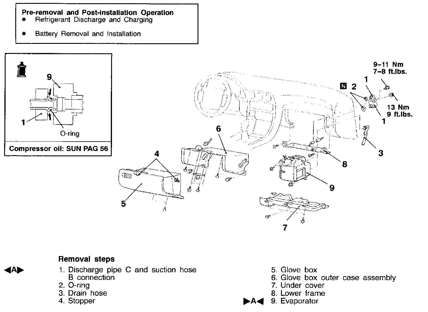 If a new evaporator is used, fill it with the specified amount of compressor oil before installing on the vehicle.
