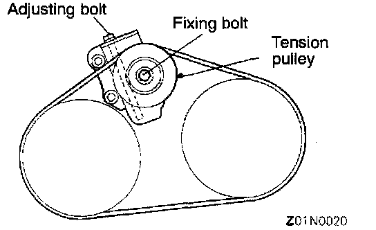 Air Conditioning Compressor Drive Belt Tension Adjustment1. Loosen the tension pulley fixing bolt.