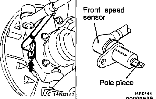 Remove the mounting bolts which hold the speed sensor bracket to the knuckle, and then remove the speed sensor.