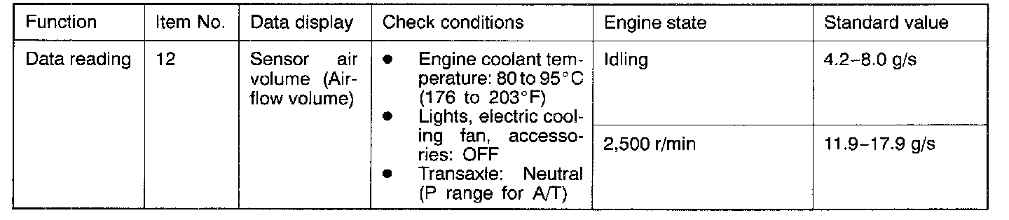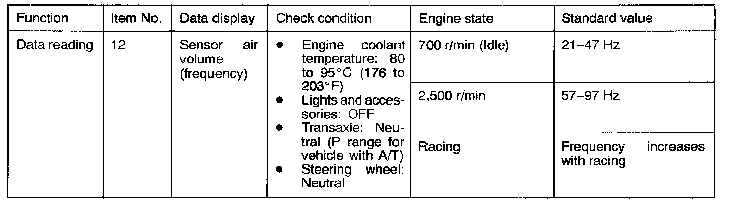If the engine can be run idle even though the volume air flow sensor output frequency is out of specification, troubles are often found in other than the volume air flow sensor itself.