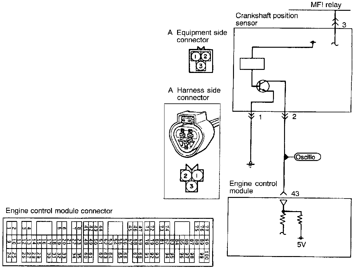 - Power to the crankshaft position sensor is supplied from the MFI relay and is grounded to the body. The crankshaft position sensor generates a pulse signal as it repeatedly connects and disconnects between 5 V voltage supplied from the engine control module and ground.
