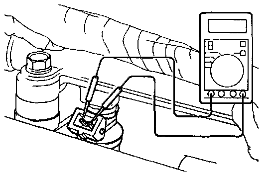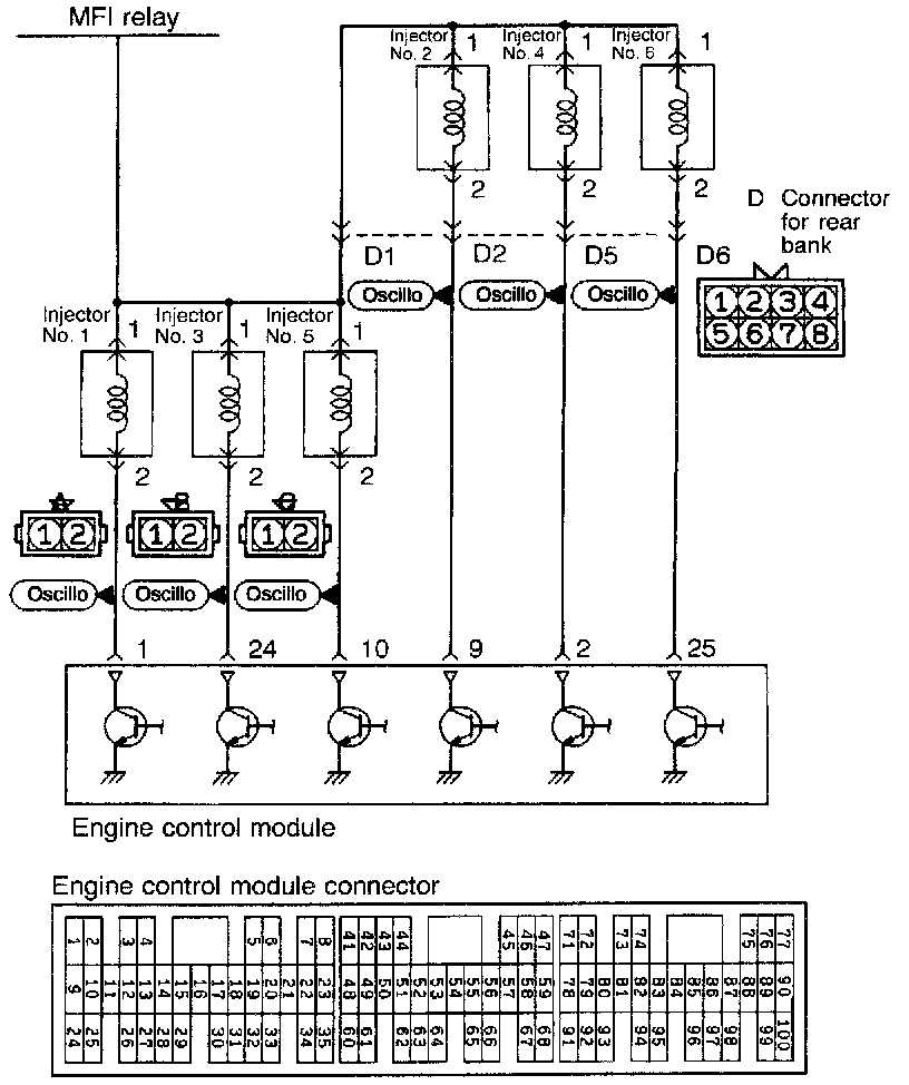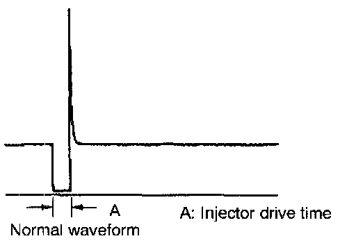 2. Connect the probe to the oscilloscope pick-up point as shown in the circuit diagram, and check the waveform at the drive side of each injector.